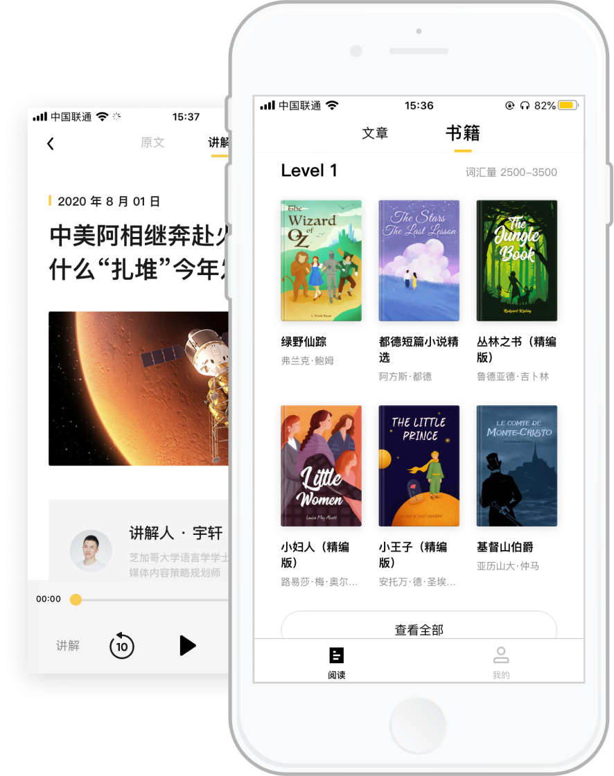 书籍:丰富的正版图书随意畅读。书籍涵盖超过 70 本原版书籍,从经典到流行《小王子》《小妇人》《福尔摩斯》《怦然心动》《一天》...